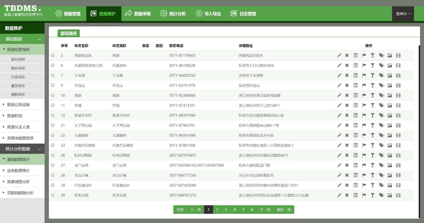 用于各類業(yè)務(wù)數(shù)據(jù)、橫向管理部門和其他涉旅數(shù)據(jù)的管理和維護(hù)。