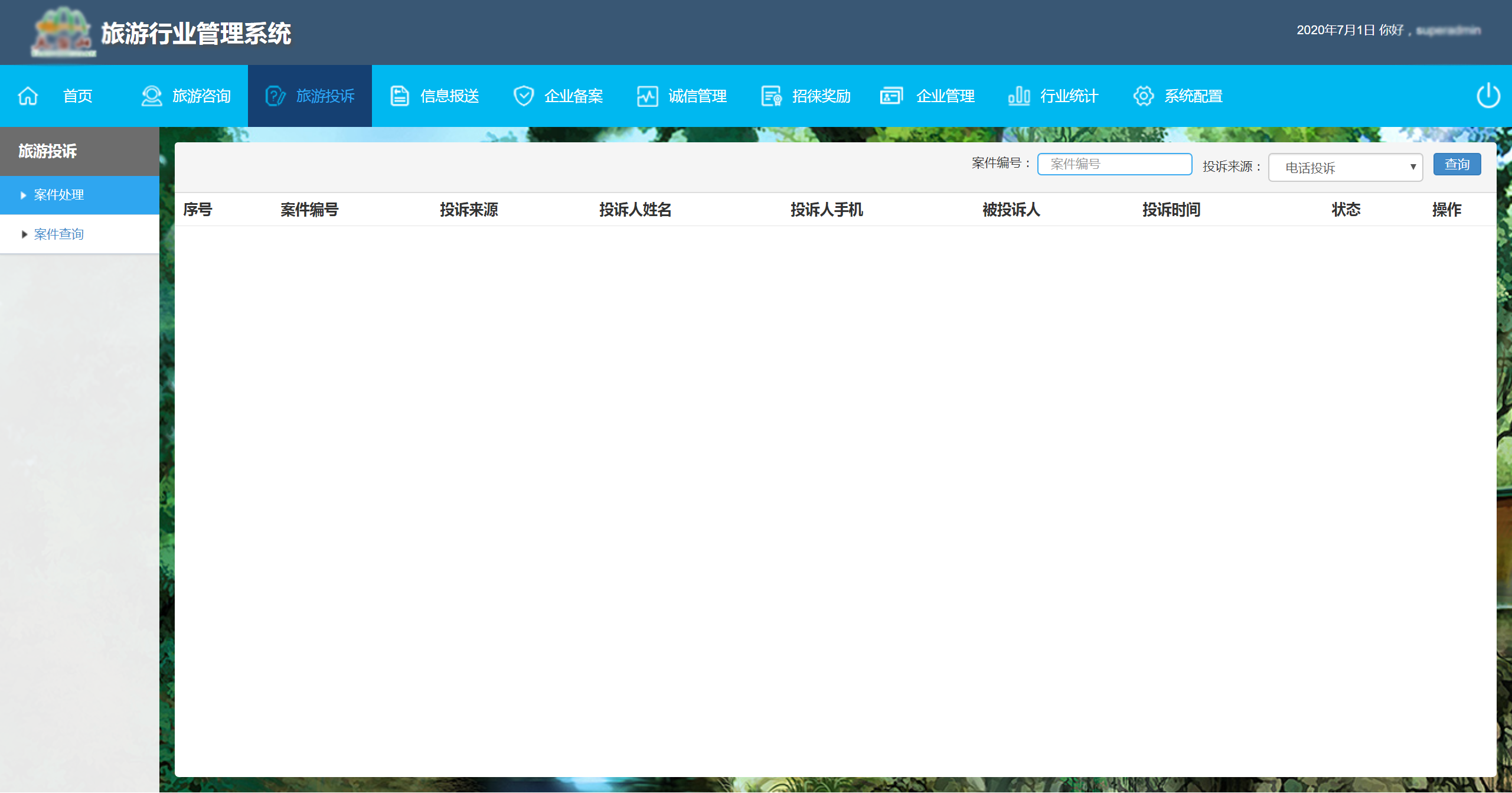 包括咨詢與投訴管理、旅游行業(yè)與涉旅企業(yè)管理、旅游誠信管理等子系統(tǒng),提供游客投訴渠道,對游客投訴的問題進行流程化處理、追溯,提升游客游覽滿意度。圍繞旅游企業(yè)信息報送、旅游企業(yè)備案、旅游業(yè)態(tài)評定、旅游行業(yè)統(tǒng)計、旅游從業(yè)人員管理、游客招徠獎勵等全方位管理。針對涉旅商家的誠信評價、不良商家曝光、投訴反饋、商家信用等全面監(jiān)管。