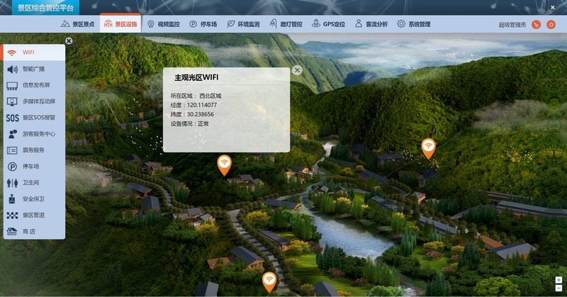 景區(qū)一體化綜合管控平臺是基于先進理念的GIS地理信息系統(tǒng),在地圖上管理所有資源、控制所有設(shè)備、顯示所有事件,集監(jiān)測、控制、維護、安保、應(yīng)急、巡檢和管理功能于一體,實現(xiàn)對全景區(qū)的實時控制管理。