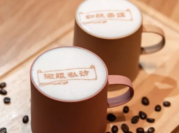 角樓咖啡有著鮮明的故宮特色。比如,以《千里江山圖》為主要的裝修元素,飲品的名字叫“康熙最愛巧克力”“三千佳麗奶茶”“養(yǎng)心咖啡”“佛手香茗”等等,連咖啡上的印花都是“御駕親征”“微服私訪”“朕心甚累”“母儀天下”“眾卿平身”“如朕親臨”等獨具宮廷特色的詞語??Х瑞^內(nèi)還有一個專門的文創(chuàng)產(chǎn)品展區(qū),可以買到《千里江山圖》的扇子、宮藏文物為封面的筆記本、故宮日歷等文創(chuàng)產(chǎn)品。當然,咖啡館里也有適應博物館文物保護的一些特殊規(guī)則,比如為了防火,店內(nèi)不能給手機充電。