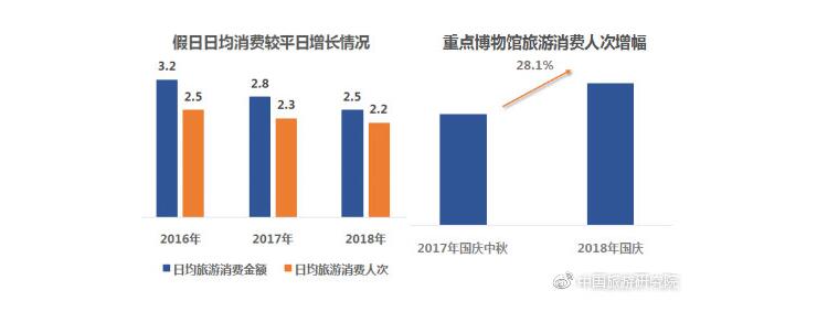 數(shù)據(jù)顯示,假日旅游日均消費金額及消費人次均超過平日的2倍以上。隨著國家對文化旅游的大力推進,假日期間豐富多彩的各類文化展覽吸引大量游客參與。2018年國慶,重點博物館消費人次同比增長達28.1%。