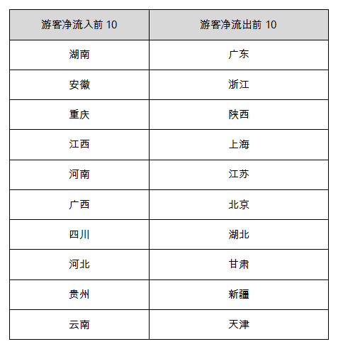 中國旅游研究院與中國電信聯(lián)合實驗室根據(jù)信令大數(shù)據(jù)測算,與國慶長假全國各地旅游較為均衡不同,春節(jié)期間南方旅游市場熱度更高。游客接待排名前10位的省域為:1、廣東 2、四川 3、湖南 4、河南 5、廣西 6、山東 7、江蘇 8、重慶 9、河北 10、安徽。