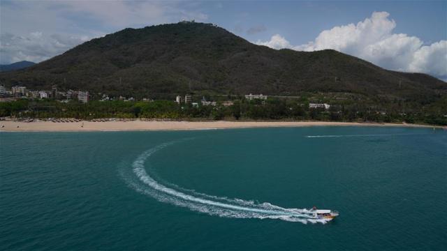 在海南省三亞市天涯海角旅游景區(qū),游客乘坐游船參觀游覽(4月13日攝)。 新華社記者 李夢(mèng)嬌 攝