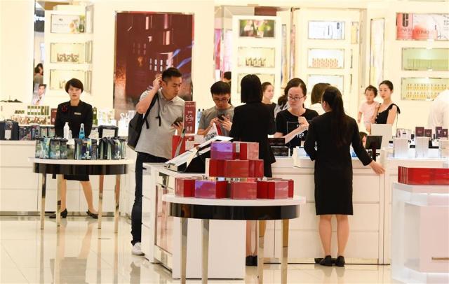 在海南省海口市內(nèi)的免稅店,顧客在選購(gòu)商品(4月9日攝)。 新華社記者 楊冠宇 攝