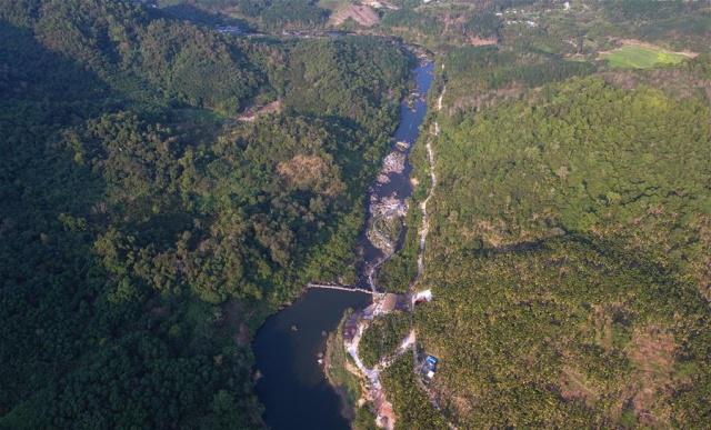 海南省瓊中黎族苗族自治縣瓊中峽漂流區(qū)(4月11日無(wú)人機(jī)拍攝)。 新華社記者 楊冠宇 攝