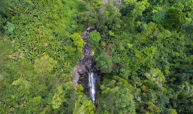 海南省瓊中黎族苗族自治縣百花嶺雨林文化旅游區(qū)內(nèi)的瀑布(4月12日無(wú)人機(jī)拍攝)。 新華社記者 楊冠宇 攝