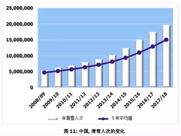 報告顯示,2017/18雪季是今年全球呈現(xiàn)上升趨勢的第二年,這是經(jīng)歷了3年下滑之后的積極現(xiàn)象。雖然全球滑雪產(chǎn)業(yè)依舊面臨挑戰(zhàn),西方國家滑雪者的數(shù)量在不減少的前提下趨于或多或少的停滯不前,但全球表現(xiàn)仍然處于較高水平。2017/18雪季是新千年以來全球排名第四的最佳雪季。