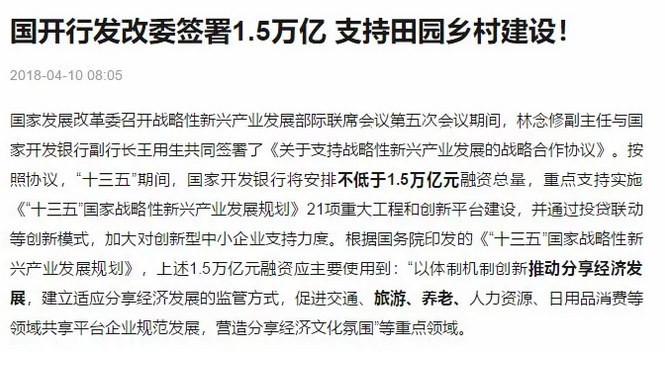 國(guó)開(kāi)行:國(guó)家開(kāi)發(fā)銀行與發(fā)改委簽署 1.5 萬(wàn)億協(xié)議,將用于農(nóng)村康養(yǎng)產(chǎn)業(yè)建設(shè)。