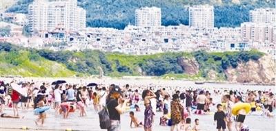 ■夏天旅游旺季,石老人海水浴場游人如織。 劉丕湘 攝
