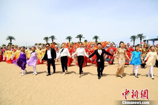 在博斯騰湖大河口景區(qū)西海沙浪景點,來自該縣的500余位能歌善舞的非遺傳承人和民間藝人們,穿著蒙古族盛裝,在舞臺上盡情表演。
