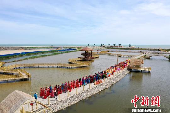 中新網烏魯木齊5月26日電(何陽)25日,繼“中國西?!|歸夢回”博湖縣第五屆薩吾爾登故鄉(xiāng)文化藝術節(jié)開篇“舞動博斯騰”后,“歌唱博斯騰”篇章在該縣大河口景區(qū)正式拉開帷幕,短調民歌對唱、戲曲聯(lián)唱、書畫展等,讓游客置身于“文化 ”的氛圍之中,感受傳統(tǒng)民俗文化的魅力。