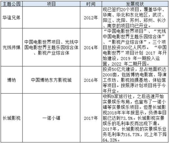 近年來,華誼兄弟、光線傳媒、博納、長城影視等紛紛涉足實景娛樂領域,據(jù)悉,奧飛娛樂、歡瑞世紀等國內傳媒公司也有實景娛樂計劃出爐。以主題樂園為發(fā)展載體的實景娛樂已經(jīng)逐漸成為國內影視娛樂巨頭們競相爭奪的肥肉。