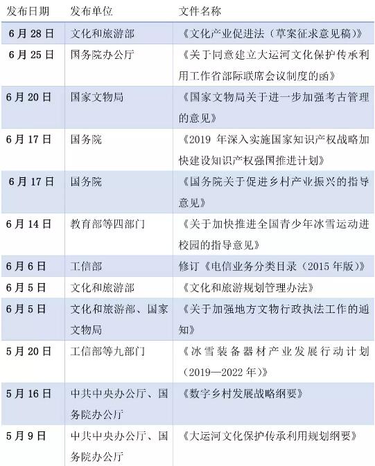二、2019上半年文化產(chǎn)業(yè)政策亮點