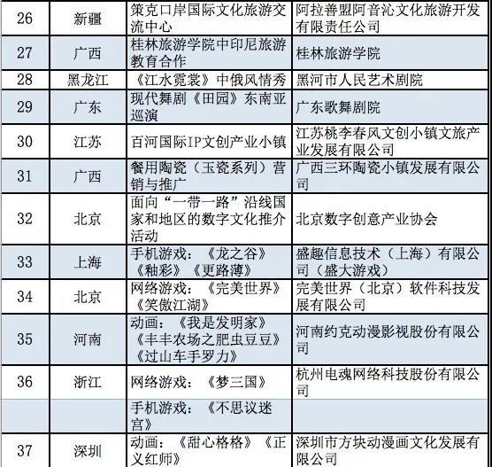 附件:文化和旅游部2019年度“一帶一路”文化產(chǎn)業(yè)和旅游產(chǎn)業(yè)國(guó)際合作重點(diǎn)項(xiàng)目公示名單