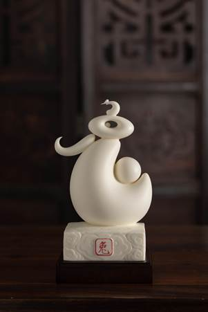在眾多生肖兔瓷文創(chuàng)產(chǎn)品中,福建省陶瓷藝術(shù)大師彭成雄的作品頗具特色。他將生肖文化、陶瓷文化與漢字文化完美融合,設(shè)計(jì)成一款漢字造型的“中華兔尊”。同時(shí),他還通過(guò)瓷雕技藝,將二維的線(xiàn)條、結(jié)構(gòu)以立體的形態(tài)表現(xiàn)出來(lái),更好地展現(xiàn)整體順滑、圓潤(rùn)、飽滿(mǎn)的視覺(jué)效果,并且從造型上呈現(xiàn)一種近似象形文字的趣味感,讓欣賞者產(chǎn)生無(wú)限的想象空間。