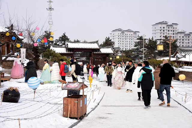 每天,位于延吉市的中國(guó)朝鮮民俗園一開門就熱鬧起來,欣賞青瓦飛檐的朝鮮族建筑、體驗(yàn)制作朝鮮族美食……各個(gè)朝鮮族服裝店外排滿了來自四面八方的游客,等著穿上朝鮮族服飾拍照留念。其中一家店鋪的負(fù)責(zé)人介紹,春節(jié)期間,來店里租衣服、拍照打卡的游客特別多,每天不到8點(diǎn)店外就排起了長(zhǎng)隊(duì),平均每天都能接待三四百人。