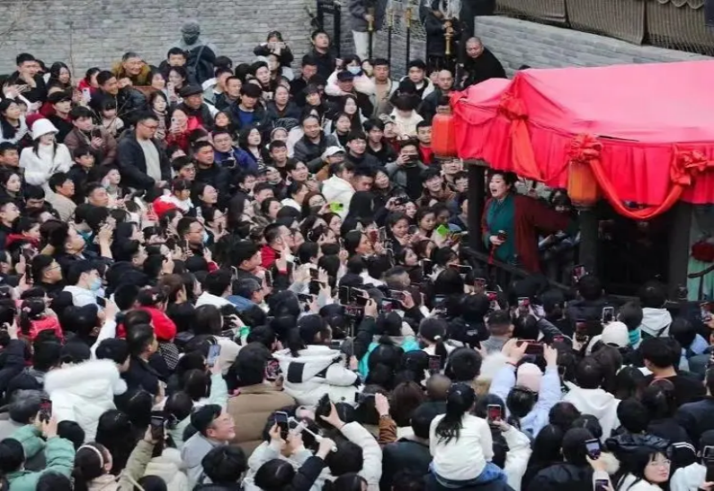 這回,開封萬歲山大宋武俠城景區(qū)另辟蹊徑,用別出心裁的“王婆說媒”博得滿堂彩,雖然表演本身有些“土味”,但是卻誠意滿滿、樸素自然,也更加接地氣,那些慕名前來的游客,無論是真正來尋找愛情的,還是只是來湊熱鬧看新奇的,給景區(qū)帶來的,都是實實在在的人氣和消費。