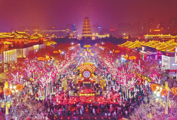 大唐不夜城有多火?今年春節(jié)期間,因客流、車流飽和,街區(qū)不得不取消或調(diào)整街區(qū)演出時(shí)間,將演出場地“省下來”給游客。春節(jié)假期街區(qū)日均游客量達(dá)65萬人次。