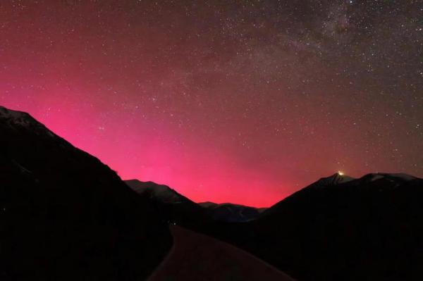 據(jù)中國(guó)科學(xué)院空間環(huán)境研究預(yù)報(bào)中心發(fā)布的消息,5月11日2時(shí)至14時(shí),地磁發(fā)生強(qiáng)烈擾動(dòng),為2004年11月以來最強(qiáng)地磁暴。由于阿勒泰境內(nèi)的禾木村處于中緯度地區(qū),太陽粒子在較高海拔與低濃度氧氣產(chǎn)生反應(yīng),呈現(xiàn)出的極光以紅紫色為主。