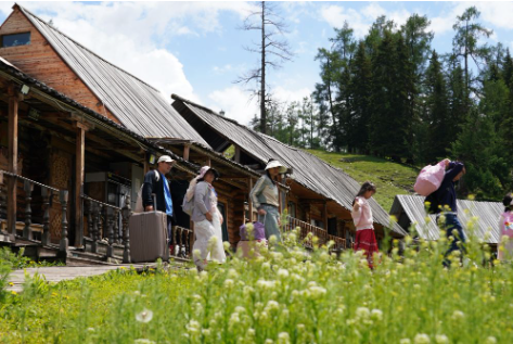 初夏午后,阿爾泰山蒼翠欲滴,牛羊成群。新疆哈巴河縣齊巴爾鎮(zhèn)吉林新村人頭攢動(dòng),來(lái)自五湖四海的游客走進(jìn)電視劇《我的阿勒泰》拍攝地,尋找“詩(shī)與遠(yuǎn)方”。
