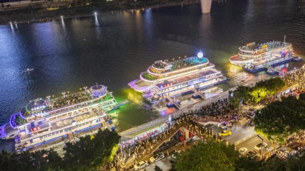 欣賞滿城燈火,到不夜渝中——“一城山水滿城燈,數(shù)盡夜景看重慶”,入夜后的渝中流光溢彩,城景交相輝映,夜游、夜食、夜玩、夜購等夜間文旅消費(fèi)業(yè)態(tài)高漲。鵝嶺貳廠文創(chuàng)公園正舉辦夜間集市,各大演藝場館正在上演悲歡離合,乘船夜游感受江岸燈火流動,下榻特色民宿聽兩江濤聲入眠。
