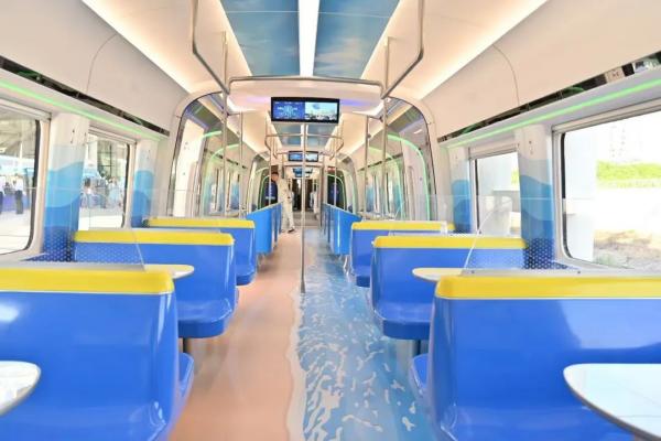 三樂旅游鐵路共有“鳳舞九天”“天涯海角”“回首之約”三個系列和“活力海洋”“椰風海韻”“走進三亞”主題車廂,動車組外觀內(nèi)飾定制化設計融合了三亞特色,創(chuàng)意十足。同時,開創(chuàng)性地配備自助咖啡奶茶機、啤酒機、AI拍照打卡機,以及無線充電等智能服務設施,為市民游客帶來全新的乘車體驗。三樂旅游鐵路還于近期啟動了“流動的美術(shù)館”“空投計劃手工體驗”“live列車音樂會”“流動的博物館”等車廂系列文化活動,將音樂會、美術(shù)展覽、手工體驗等藝術(shù)活動“搬”上高鐵,讓文化、科技與旅行完美融合,將車廂打造成為一個流動的藝術(shù)空間,為旅客們送上誠意滿滿的藝術(shù)“大禮包”,進一步豐富旅客的出行體驗。