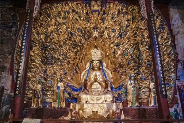 大足石刻是大足區(qū)境內(nèi)所有石刻造像的總稱,迄今公布為文物保護(hù)單位的石刻多達(dá)75處,造像5萬余尊。與敦煌莫高窟、云岡石窟、龍門石窟齊名,是享譽(yù)世界文化遺產(chǎn)。它不僅是中國石窟藝術(shù)的重要代表,更是世界文化寶庫中的瑰寶。1999年,大足石刻被聯(lián)合國教科文組織列入《世界遺產(chǎn)名錄》。