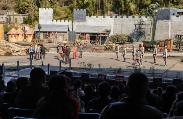 位于大別山腹地的安徽霍山縣落兒嶺鎮(zhèn),寂靜春風(fēng)掠過草木葳蕤的崖壁,峽谷里卻突然騰起硝煙,一陣陣激烈的槍炮聲在山谷間回蕩。這是大型實(shí)景劇《大別山傳奇》的演出現(xiàn)場。年輕游客白欣語說,置身現(xiàn)場,數(shù)十名戰(zhàn)士從山間無畏地沖向敵人時(shí),感覺自己是在歷史中震顫的參與者。