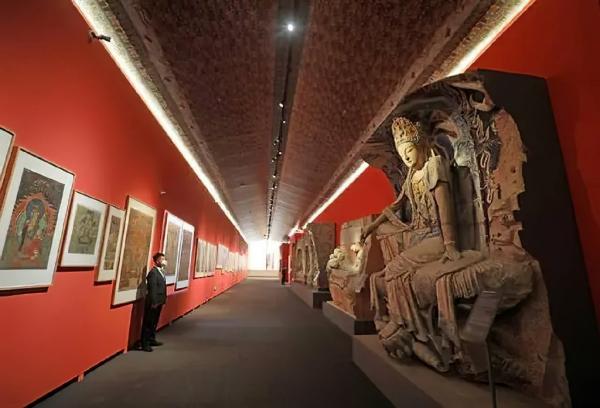 展廳內(nèi),被譽為“東方維納斯”的紫竹觀音像通過3D打印技術(shù)1:1復(fù)刻,游客無需跋涉50公里外的毗盧洞即可近觀其衣袂飄動的細節(jié)。Mapping投影與互動長卷技術(shù)將華嚴洞三圣像、臥佛院釋迦涅槃像等經(jīng)典造像動態(tài)重現(xiàn),游客可透過手勢感應(yīng)觸發(fā)佛像“自述”前世今生,或通過腦機設(shè)備將腦海中的佛像具象化呈現(xiàn)。