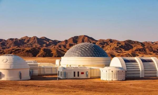 在甘肅金昌市郊的紅巖戈壁,一片形似外星的地貌上,火星1號(hào)基地靜靜矗立。太陽能板、星空帳篷和火星探測器散布在赤色巖壁上,營造出強(qiáng)烈的異星穿越感。