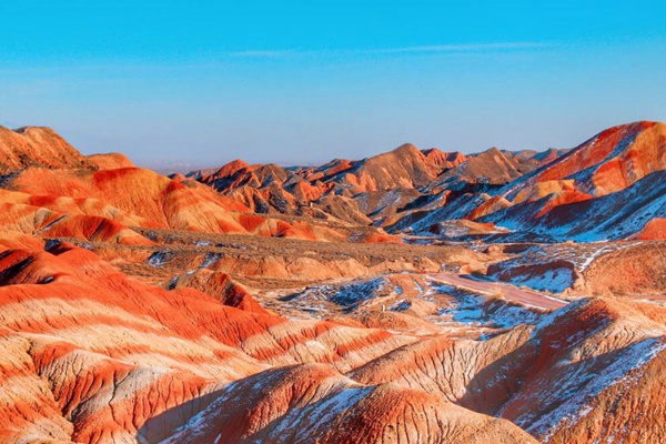 窗欞狀宮殿式丹霞是這里最典型的地貌特征,冰溝丹霞景區(qū)內(nèi)奇峰聳立,形態(tài)各異,如宮殿、如寶塔,展現(xiàn)了大自然鬼斧神工的雕刻技藝。這些地質(zhì)奇觀形成于800萬年前,由板塊構(gòu)造運(yùn)動(dòng)隆升為丘陵,再經(jīng)風(fēng)雨剝蝕出露地表。