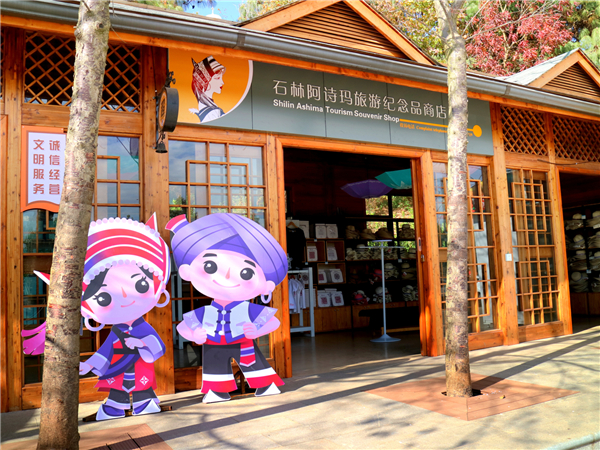 在石林景區(qū)入口處,一座由旅游大巴司機休息室改造的阿詩瑪文化展廳雖面積有限卻內(nèi)涵豐厚。“要守住旅游資源這塊陣地,文化必須有‘根’?!本皡^(qū)文化演繹組負責人昂貴強調(diào)。這里陳列的不僅是文物,更是一個民族的生活史詩——國家級非遺彝族撒尼語口傳敘事長詩《阿詩瑪》通過數(shù)字媒介娓娓道來,游客在踏入石林前便已沉浸于文化語境。